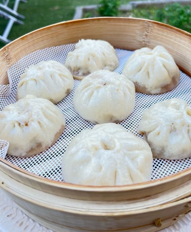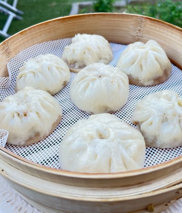 Le baozi 包子 , petit pain farci à la viande et aux légumes et cuit à la vapeur, est un met très populaire de la cuisine chinoise. Je vous propose deux types de Baozi, l'un cuit à la vapeur et l'autre doré à la poêle