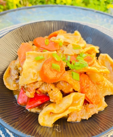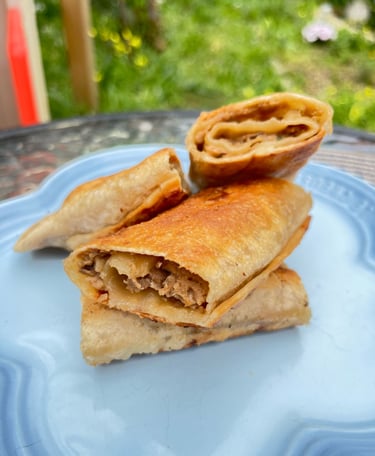 Une recette qui fait partie des nourritures populaires que l'on peut trouver facilement dans les rues de Beijing. Puisque l'inventeur de cette galette habitait dans la banlieue est de Pékin, on l'appelle donc en chinois "galette de l'est de Pékin". Traditionnellement, on utilise la viande de bœuf ou de porc. Comme son nom l'indique la pâte est croustillante.