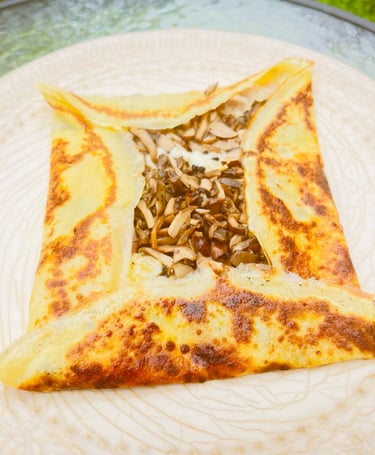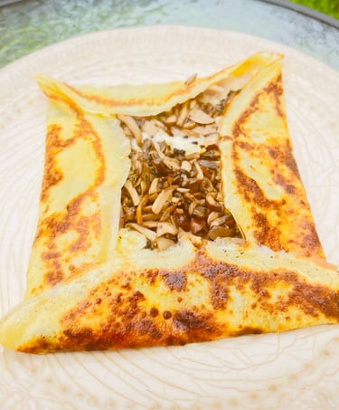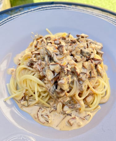 Champignons parisiens , jambon ,fromage bleu .fromage et copeaux de truffes