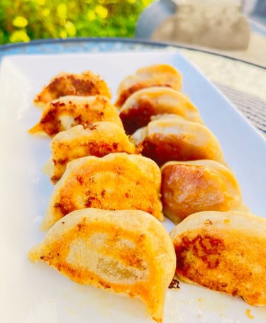 Succulents raviolis farcis au porc et aux légumes de saison, délicatement parfumés, et cuits à l'eau puis dorés à la poêle. Également un classique incontournable de la cuisine chinoise, parfait pour les repas conviviaux.