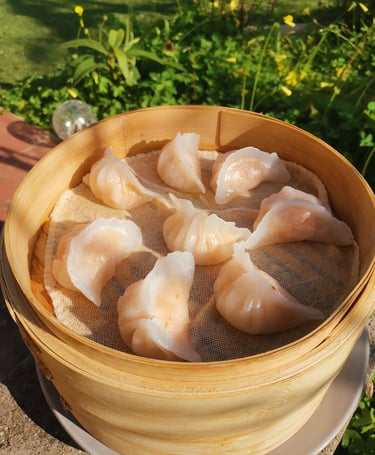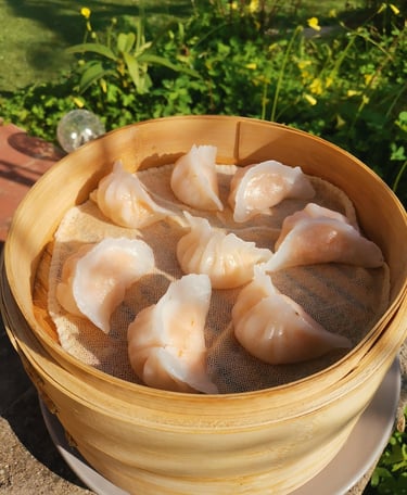 Plat classique de la cuisine cantonaise (虾饺) et désigné comme l'un des quatre rois célestes, il nécessite beaucoup de travail. Bien évidement, comme pour les autres plats, je prépare moi même la pâte et la farce. Son prix est également justifié par le fait que les crevettes doivent être de qualité supérieure.