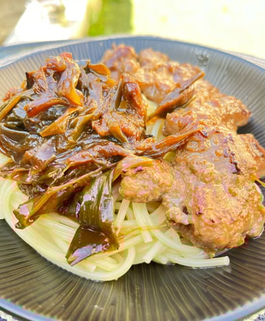 葱油牛肉意大利面 Spaghettis aux trois oignons confits et au bœuf